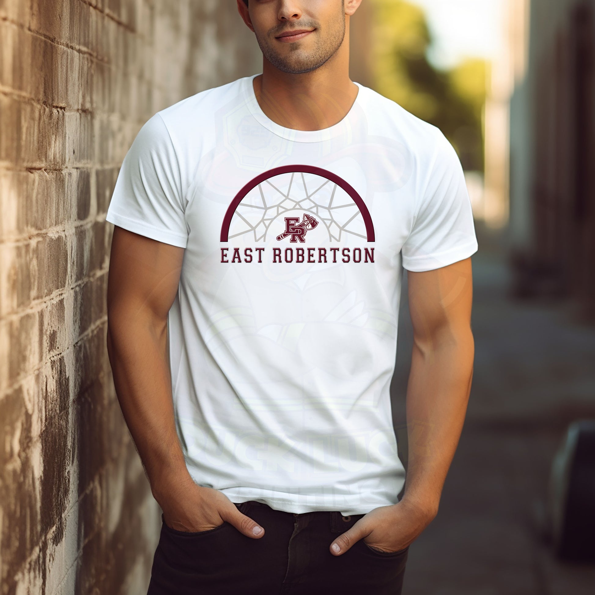 Celebrate your school spirit with this exclusive East Robertson Basketball Half Rim_Shirt! It's designed to show off your mascot and keep you comfortable all day long. It's the perfect way to show your support for your school's team.