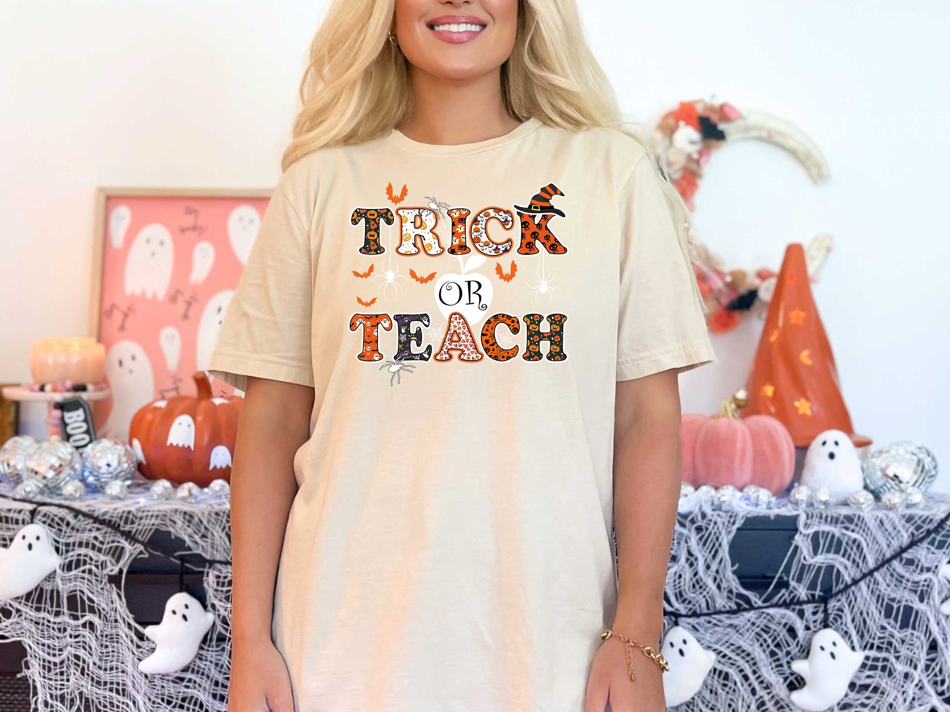 It's the spookiest time of year, but this Trick or Teach TShirt is here to save the day! With a playful design and teachers' Halloween spirit, it's the perfect way to spread some learning fun. Get it now and let the spooky shenanigans begin!